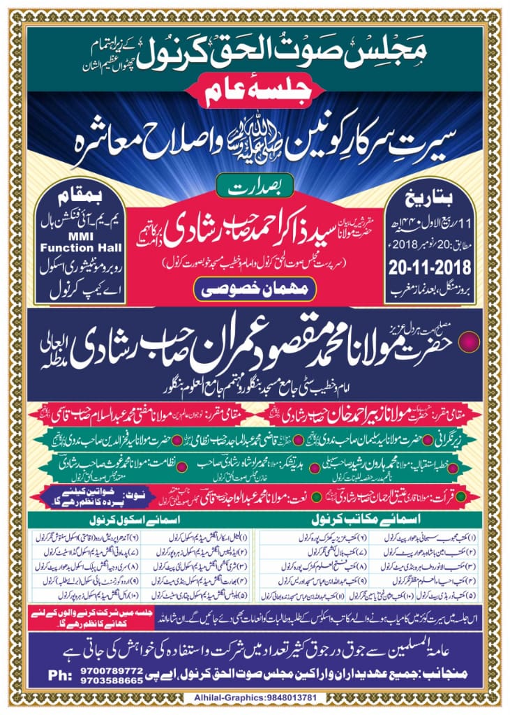 Jalsa Sirath un Nabi SAW (22-11-2018) Majlis-e-Sauthul Haq, Kurnool